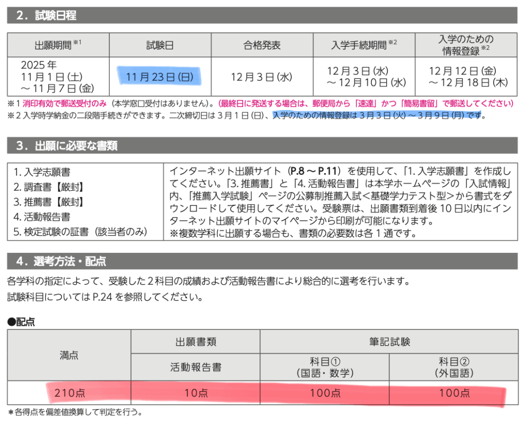 文科省の規定では、一般入試は2月1日以降に実施しなければならないので、「年内入試」は、正確には特別入試(総合型選抜か公募制推薦)。だから、建前として、何らかの形の「志望理由書」などを必要とします。
