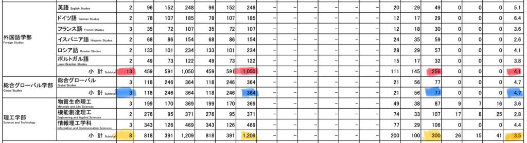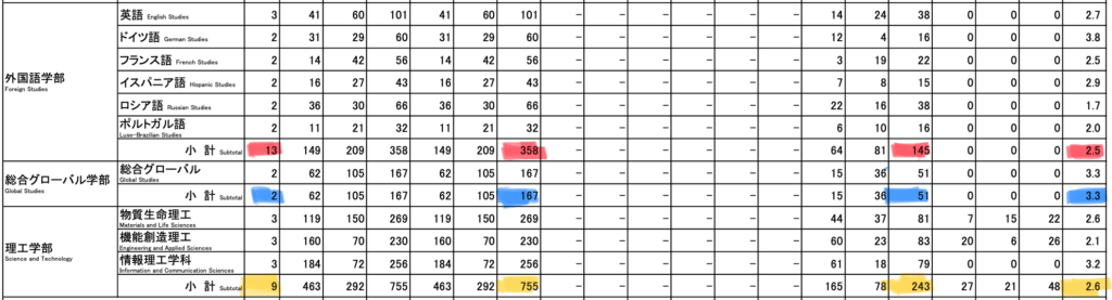 科目数が少ないほど受験生が多くなり、倍率が上がります。逆に、科目数が多いほど受験生は少なくなり、倍率が下がります。
