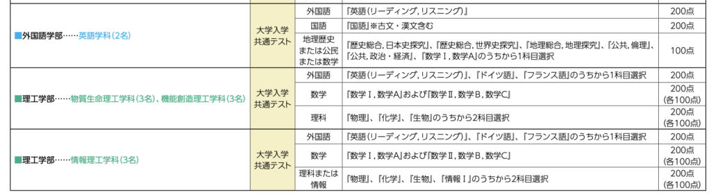 「国語」の範囲を狭くすることでも、受験生を呼び込もうとしていることがわかる。