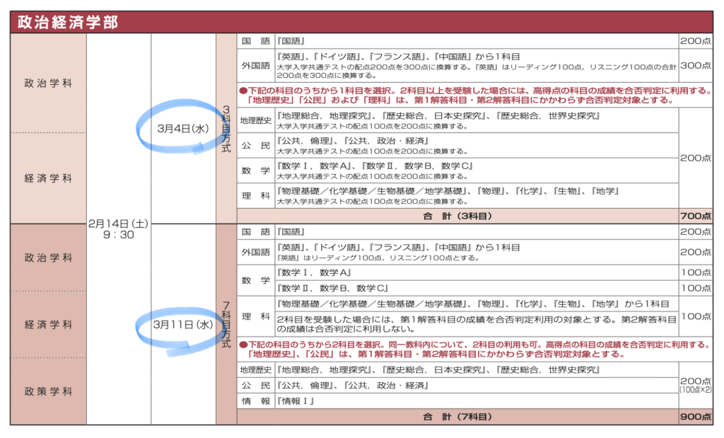 一番下の「3科目ベスト2型」は、高得点2科目で合否を判断する方式。実質、2科目受験。