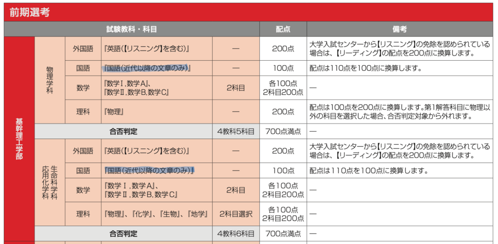 特に理系志望者は、「国語」の範囲、「理科」の科目数に注意してほしい。
