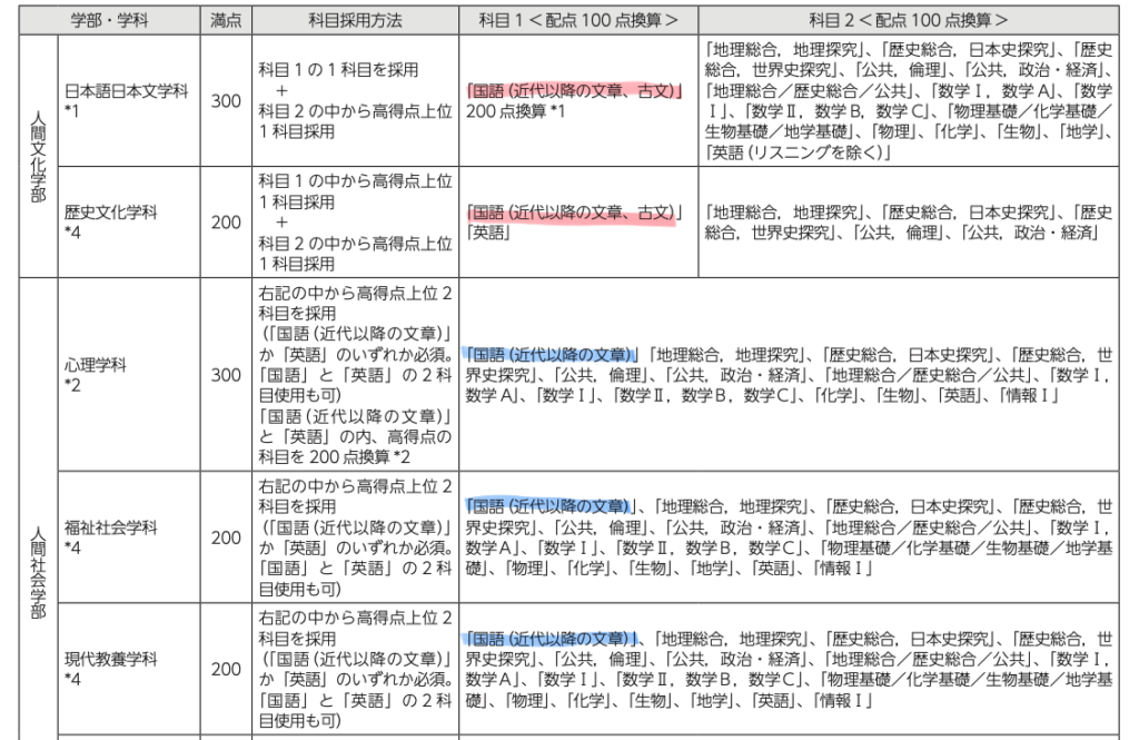 人間文化学部は、「国語」が現代文と古文のみ。漢文が不要。
